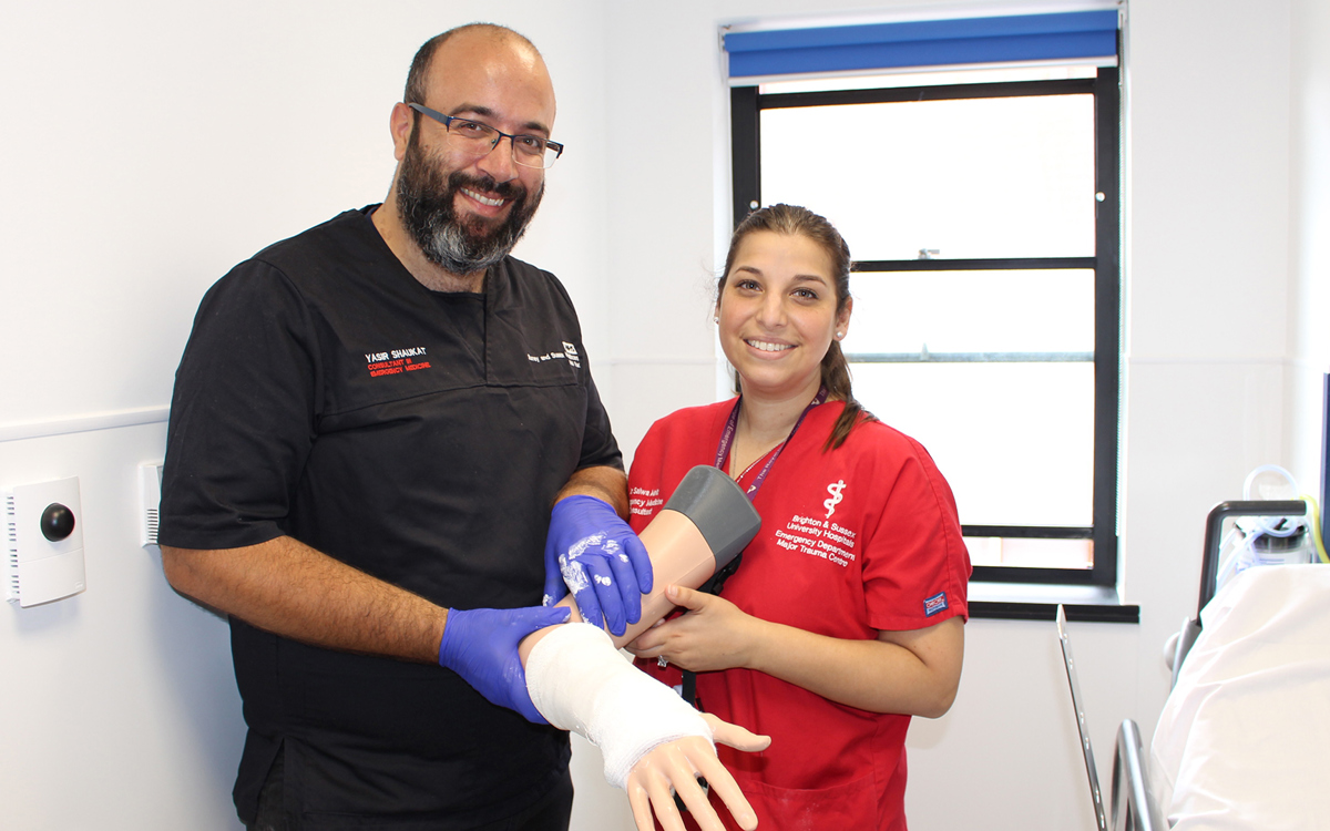 There is a belief that the Colles’ Fracture Reduction Trainer has a place in every emergency department across the world. Such is the frequency of the injury and the subsequent procedure, there is an inherent need for a suitable training solution, which in turn eliminates complications and the need for corrective surgery. At the Brighton and Sussex University Hospitals Trust, they’ve had access to one for some time now, albeit a prototype. So, what’s been the effect? “It’s an element of confidence first of all for juniors”, Dr Malik expresses emphatically. She continues: “We have had a look at the educational value of it and the educational value has said every single time that they (the junior doctors) are much more confident, they feel more competent, and that leads to more successful reductions. The more that they feel they that they can do it independently, the more they will be successful in doing it. It’s a complex procedure that we’re not taught about in a lot of detail at medical school. You saw how many people ended up having to be involved in that procedure; just teaching someone how to do it – there’s quite a lot involved.” It’s a sentiment Dr Shaukat echoes and expands upon: “It’s opportunity as well, as with any field, especially in the medical field, when you do procedures, you get better every single time and you learn and learn, and your expertise level goes up, but only after doing so many of certain procedures.”