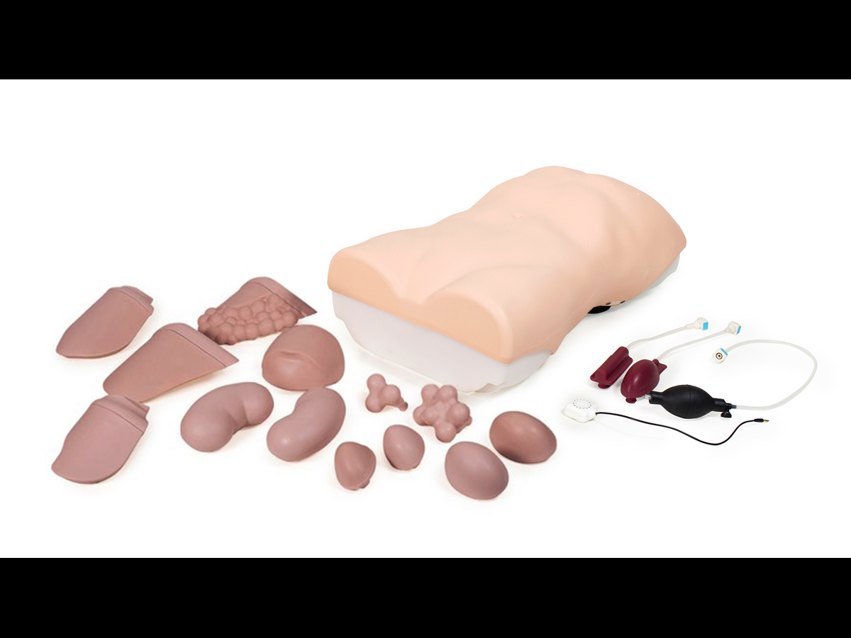 - Lifelike quality of abdominal skin accommodates for gaseous distension and ascites simulation