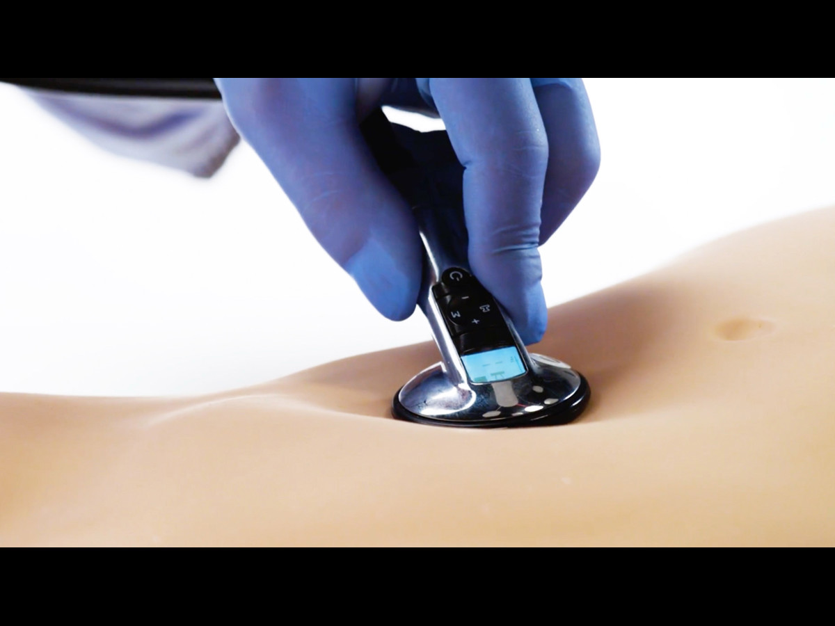The Abdominal Examination Trainer is also equipped with a built-in MP3 and has a memory stick with 3 pre-recorded audio sounds which are played at various locations in the abdomen and heard during auscultation with a stethoscope.