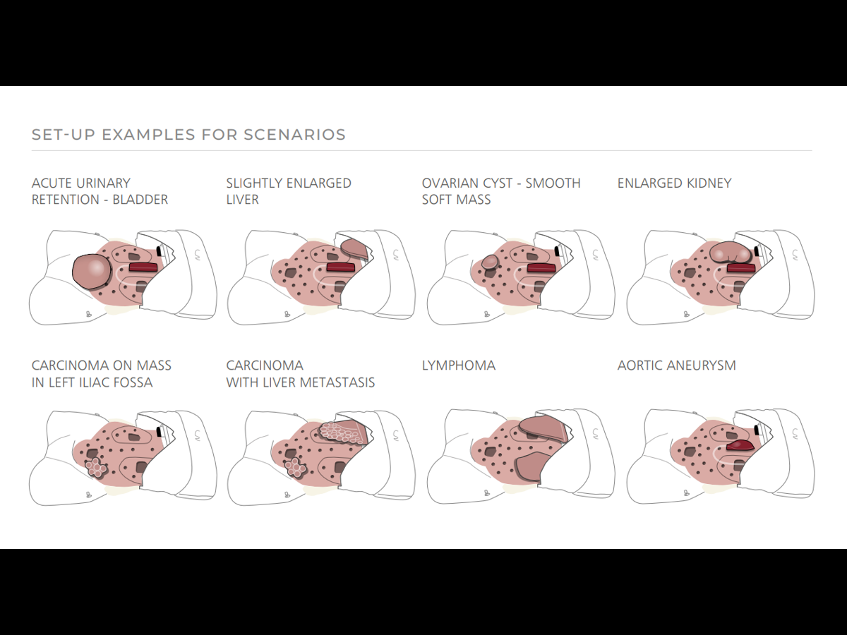 - Contains both normal and abnormal pathologies of organs that react realistically under palpation and respond appropriately to percussion
