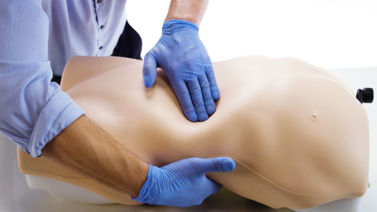 - Lifelike quality of abdominal skin accommodates for gaseous distension and ascites simulation