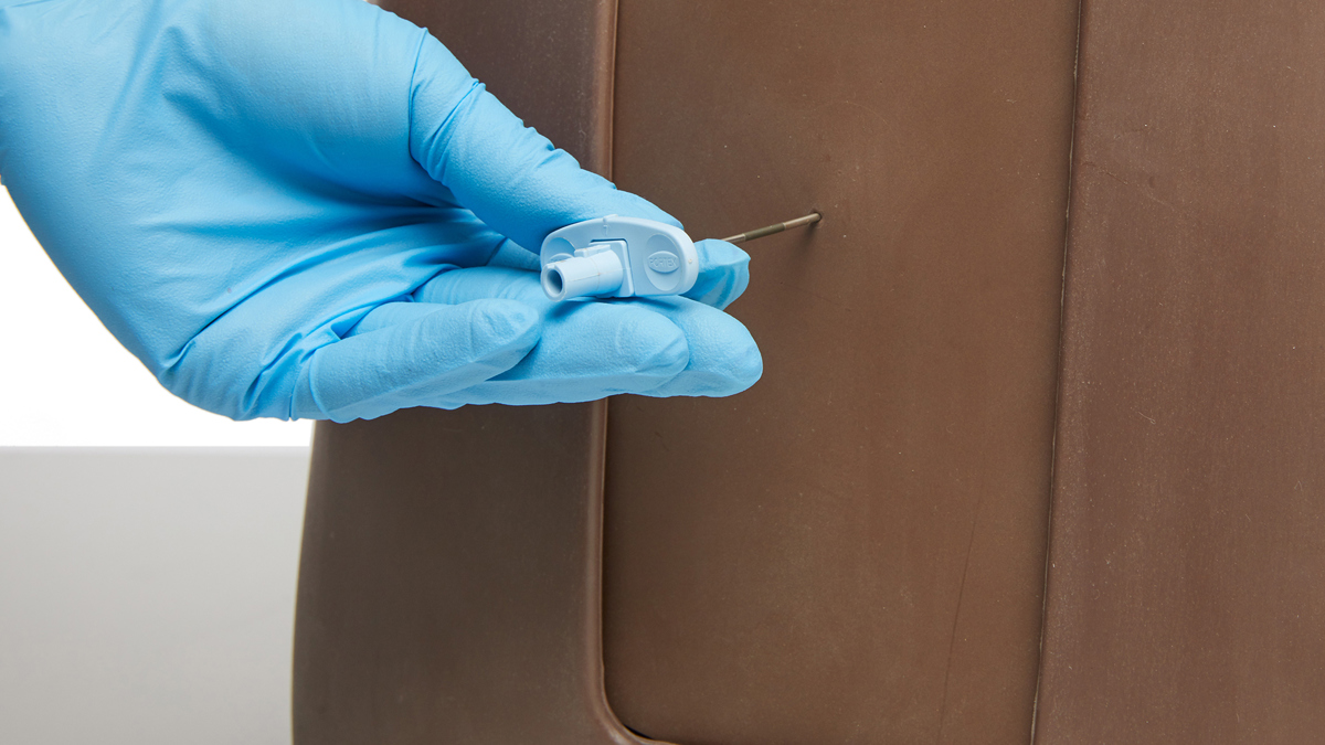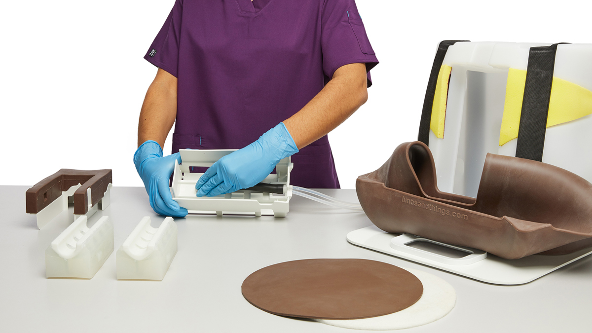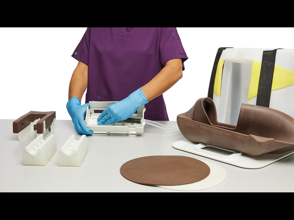 The advanced model comes with three fat pads that can be inserted behind the Skin Pad. Used individually or in combination, they can simulate patients with different amounts of body fat, allowing trainees to practice varying difficulties of injection.