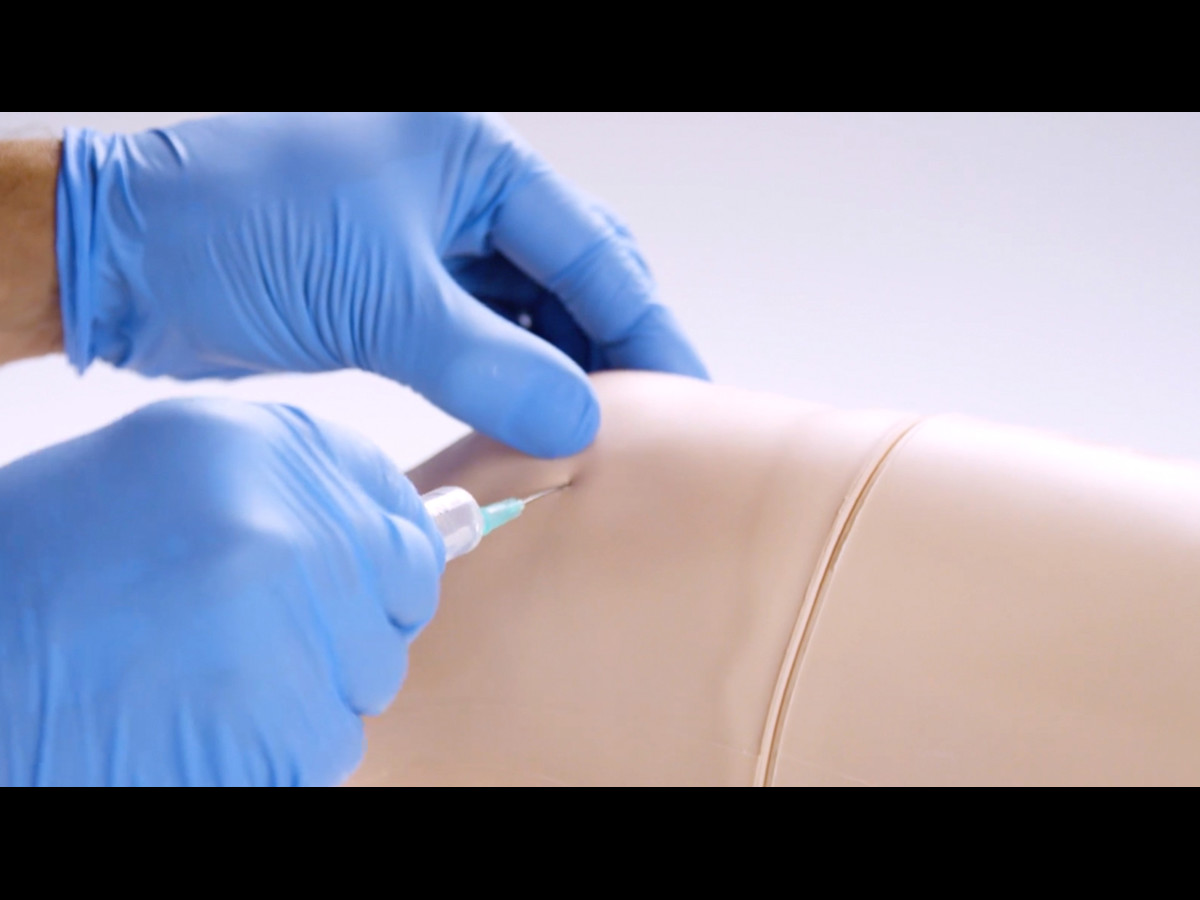 - During practice injections, be sure to remove the needle at the same angle as inserted, removing at an angle can cause the knee skin to split
