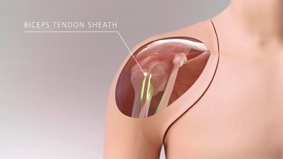 - Biceps Tendon Sheath (which lies in the Bicipital Groove and surrounds the tendon)