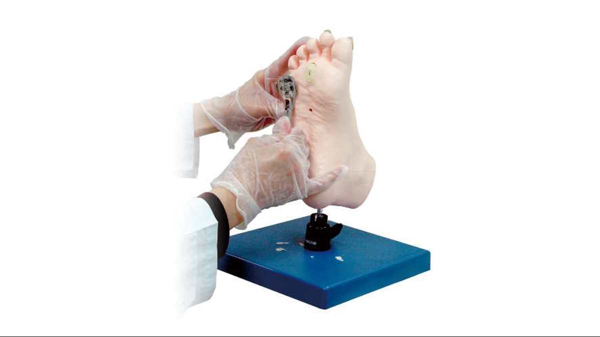 This model provides training for the simple trimming of nails and callosities by healthcare providers. It also serves as a useful tool for general education regarding basic foot care.