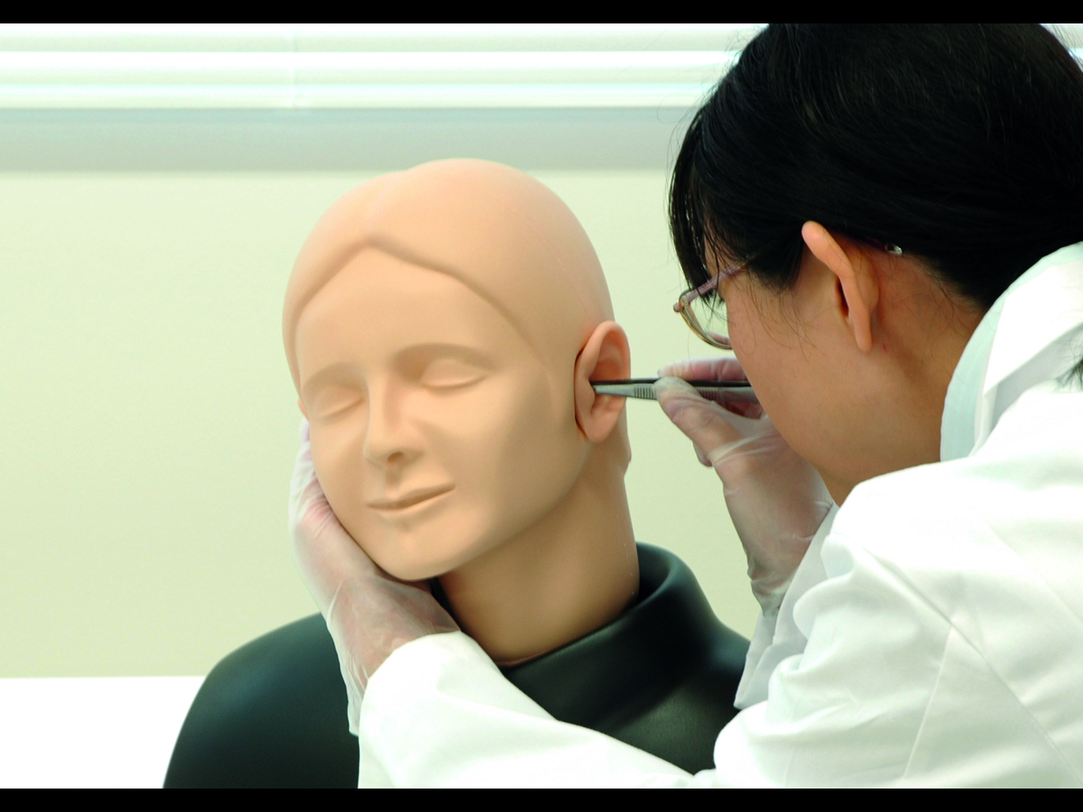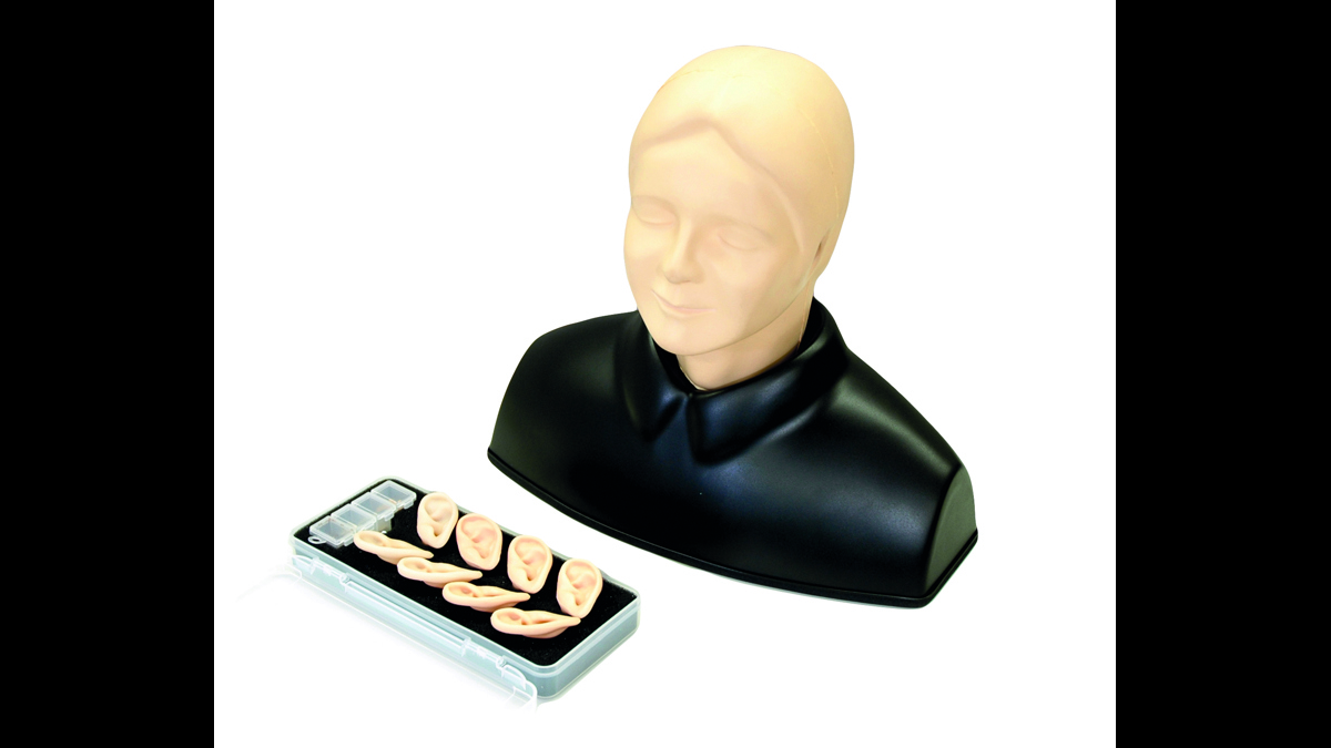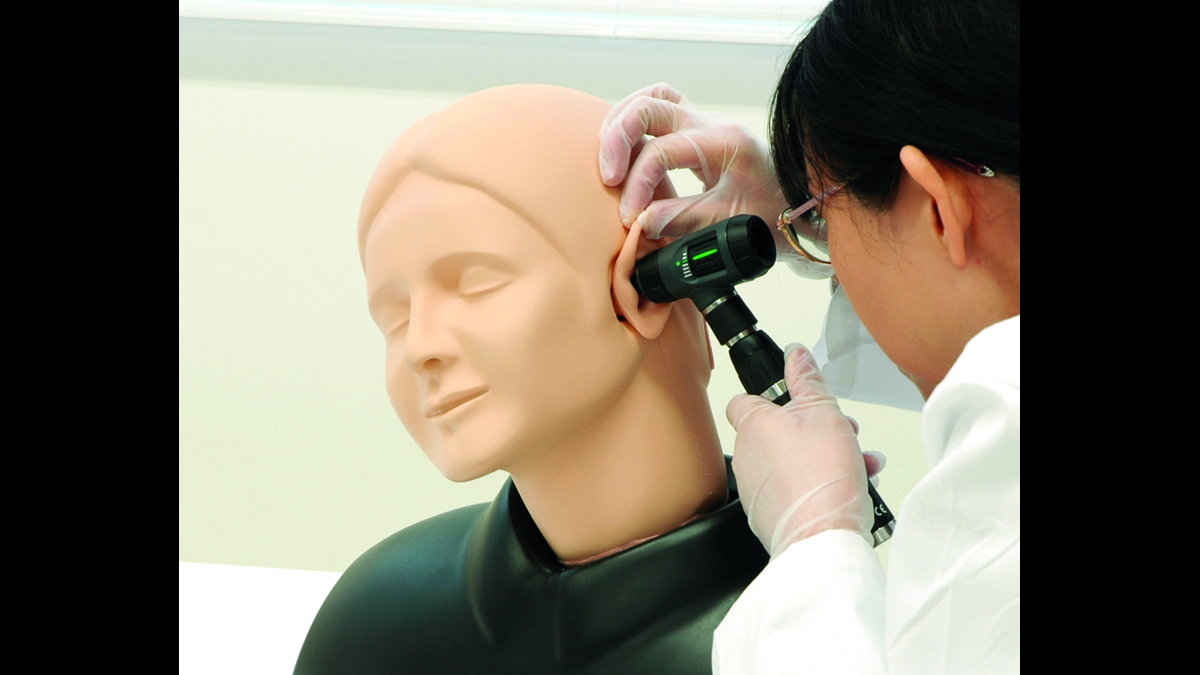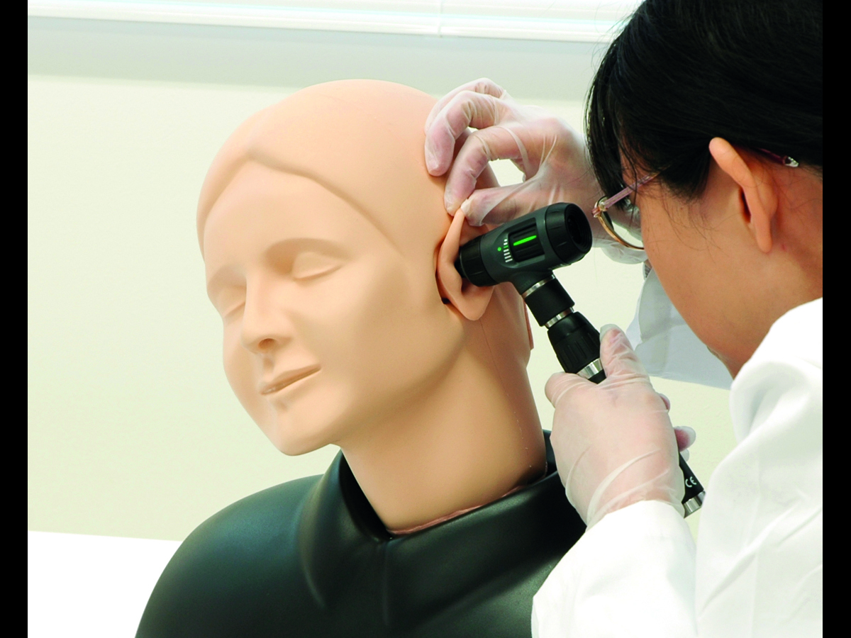 Kyoto Kagaku’s Ear Examination Simulator II is a life size model of an adult head and shoulders. The ear anatomy includes the external acoustic meatus and tympanic membrane for training in examinations with an otoscope and foreign body removal.