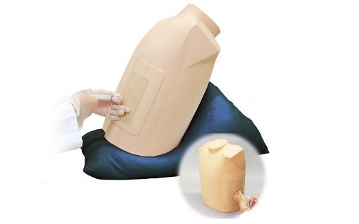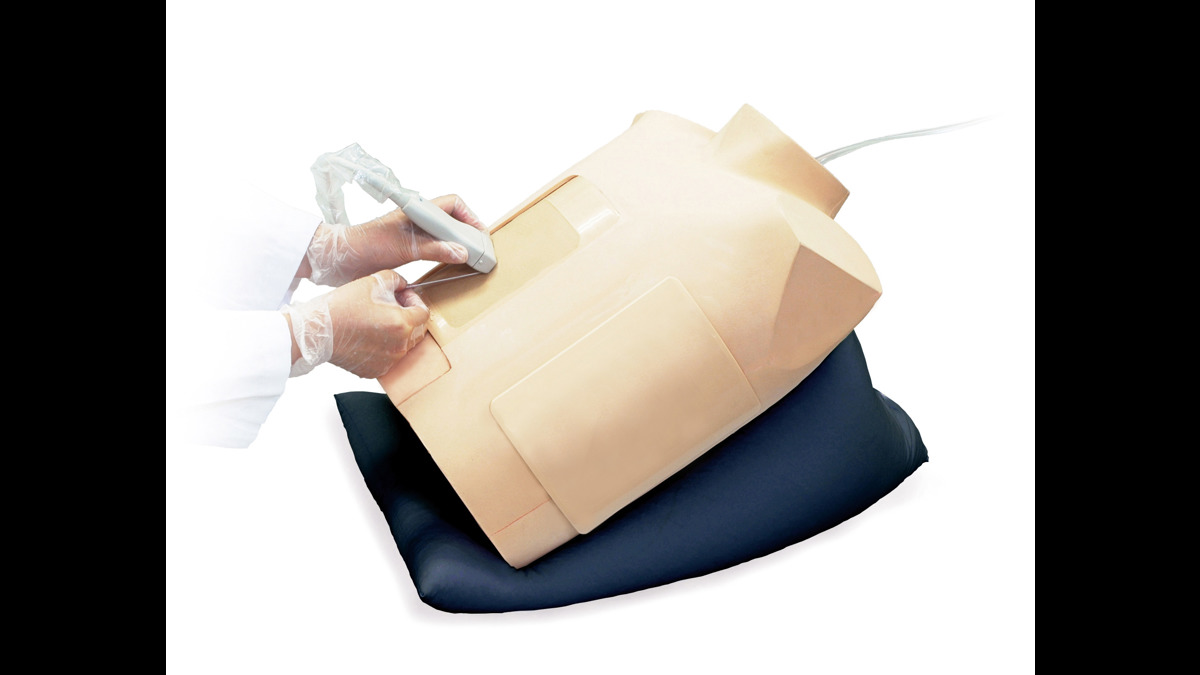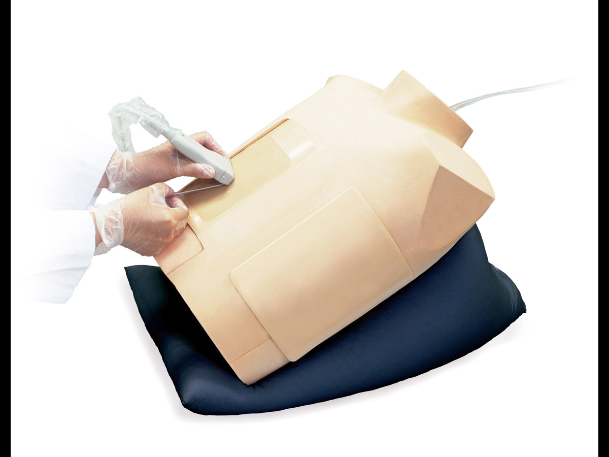 This simulator allows trainees to practise pericardiocentesis: inserting the needle under ultrasound guidance, piercing the pericardial sac and aspirating pericardial fluid.