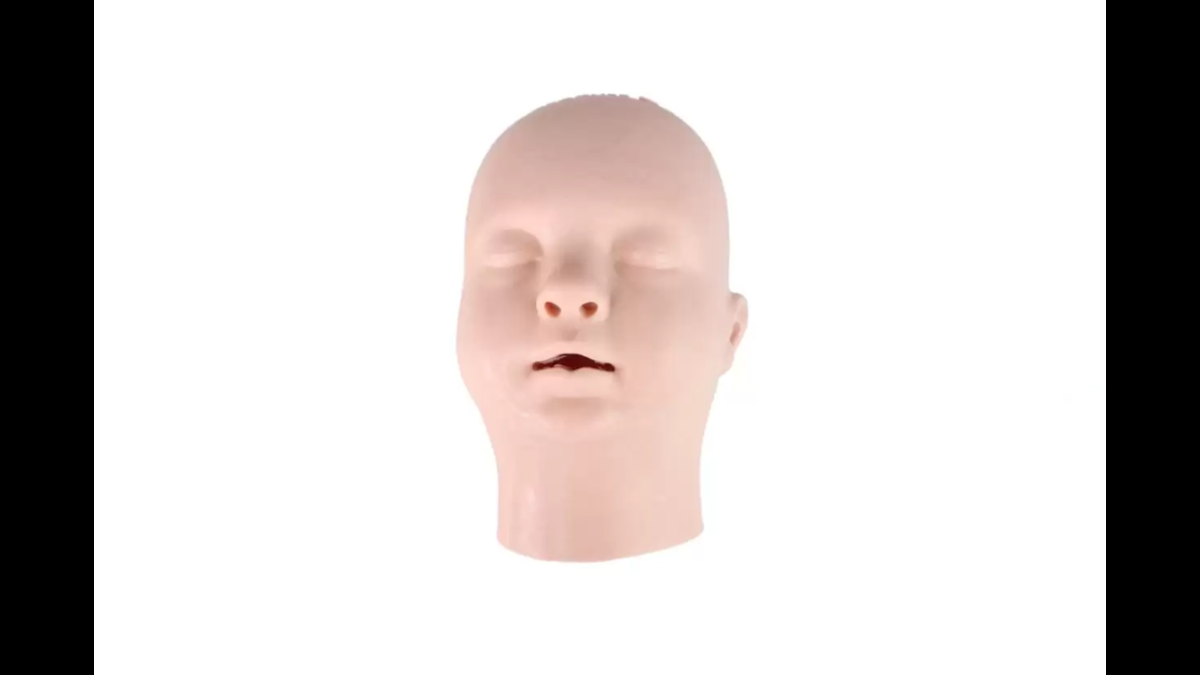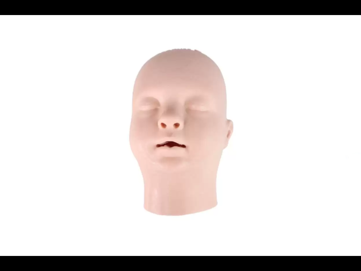 Replacement light skin tone head skin and nasal connector for the Baby X AirSim intubation manikin.