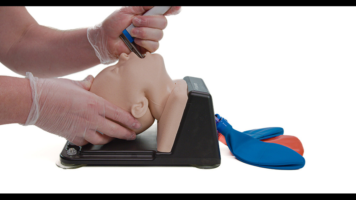 Realistic external and internal anatomical features allow for easy and successful demonstration of all pediatric video laryngoscopes