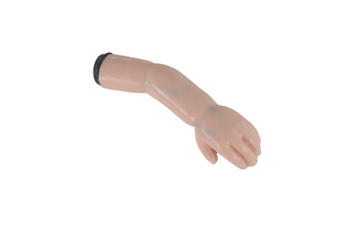 This IV arm trainer can be fully sanitised by wiping the silicone skin with a 75%+ alcohol spray
