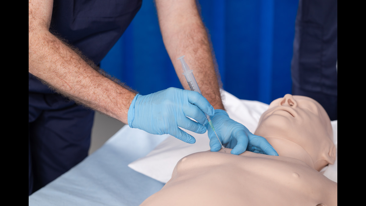 - Needle decompression of tension pneumothorax (2nd and 5th intercostal space)