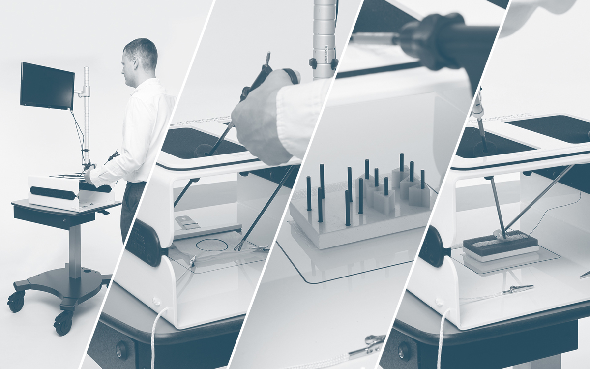 Full mobile FLS Trainer System with laparoscopic instruments.