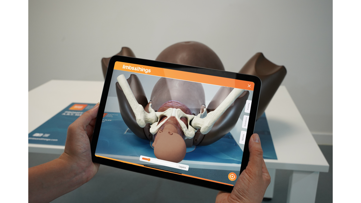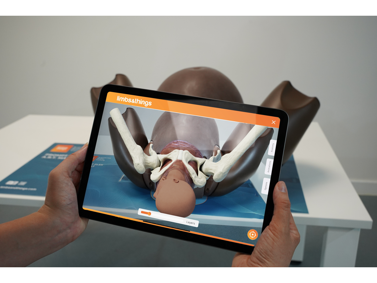 Enhance birth simulation training by combining the PROMPT Flex birthing simulator, Augmented Reality Mat and FREE Limbs AR app, for a dynamic experience of overlaid anatomy and captivating procedural animations, including spontaneous vaginal birth, breech Mauriceau-Smellie-Veit manoeuvre, and shoulder dystocia scenarios showing McRoberts, suprapubic pressure and internal manoeuvres.
