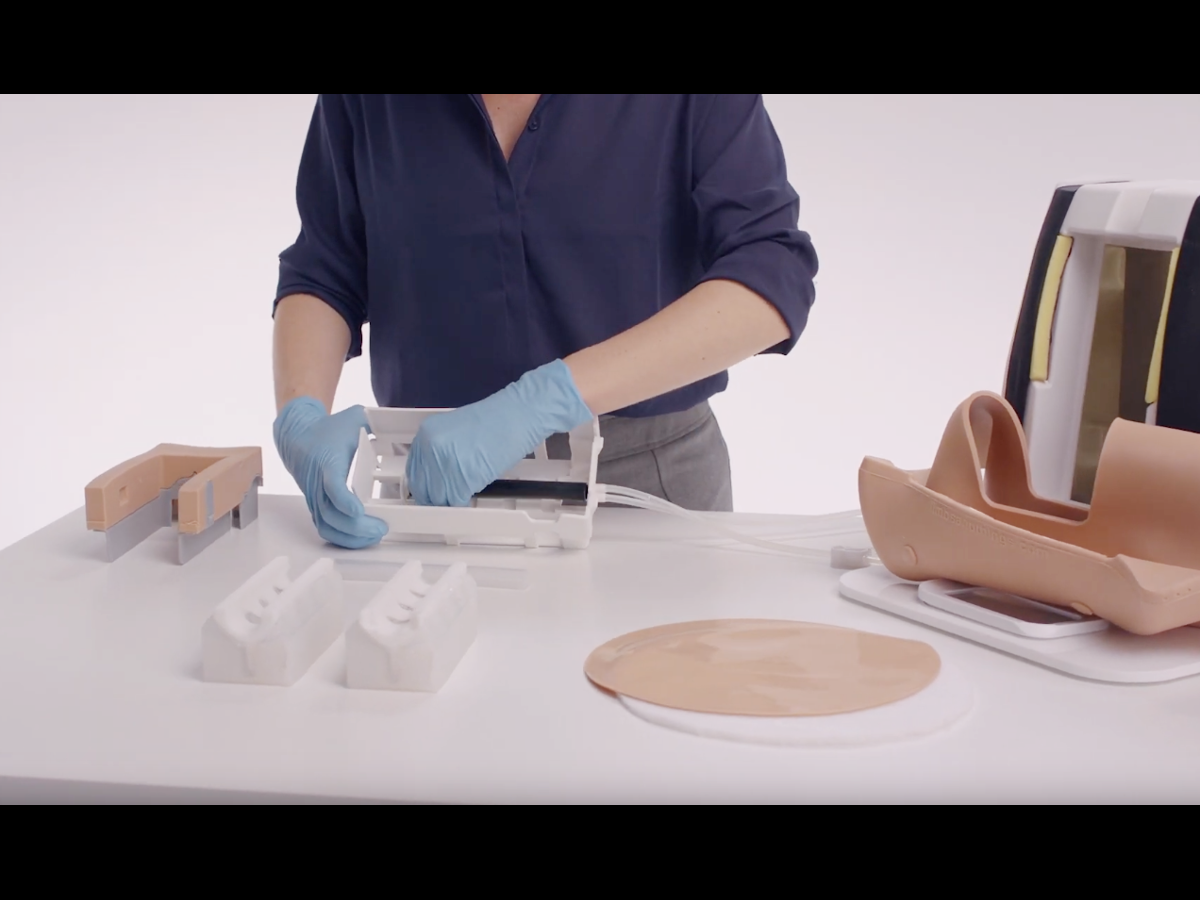The advanced model comes with three fat pads that can be inserted behind the Skin Pad. Used individually or in combination, they can simulate patients with different amounts of body fat, allowing trainees to practice varying difficulties of injection.