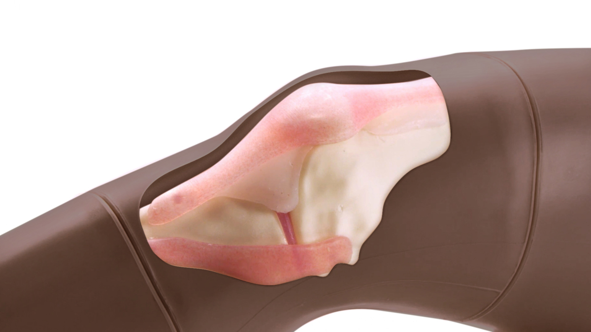 - Anatomically accurate synovial sac and palpable patella
