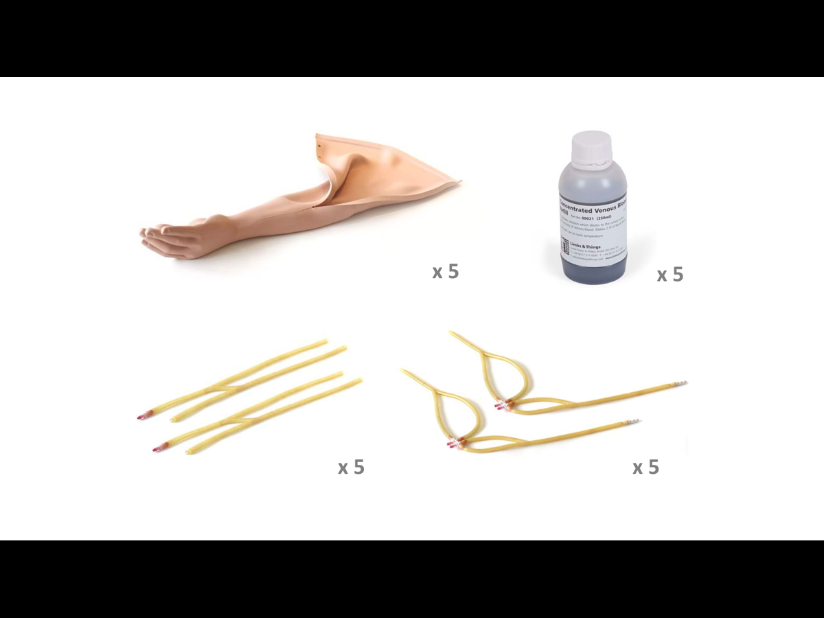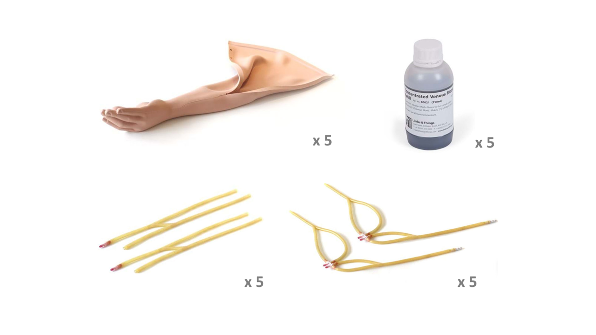 Consumable bundle for the Limbs & Things Venipuncture Arms. This pack includes the following items that are suitable for use with the Standard and Advanced Venipuncture Arms: