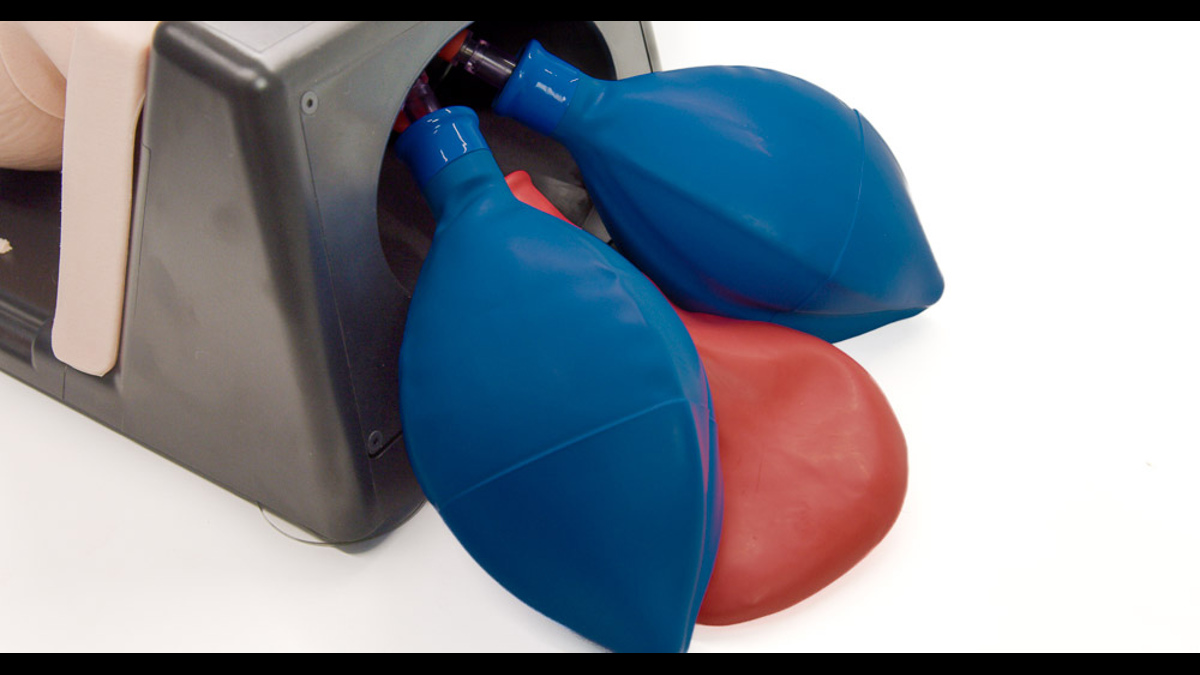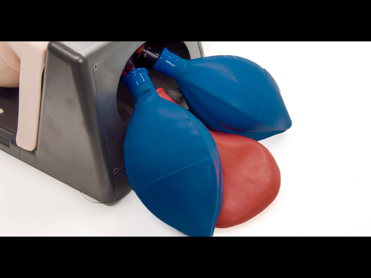 - Larynx and trachea leading to two lung bags – inflates in response to correct intubation