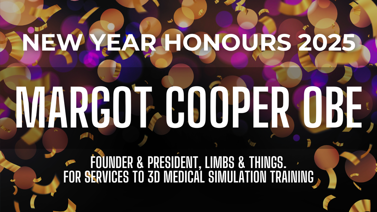 Margot Cooper was recognised for her ongoing services to 3D Medical Simulation Training with an OBE in the King's New Year Honours 2025.