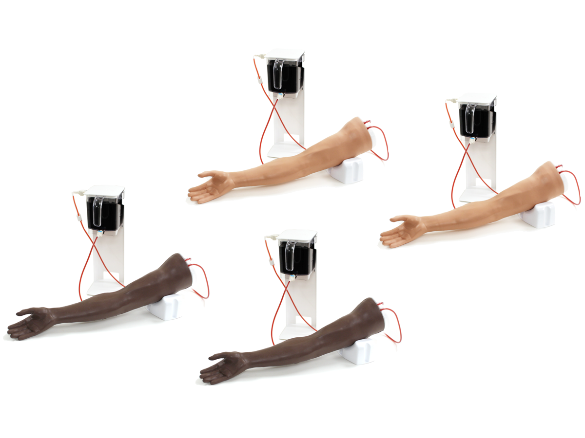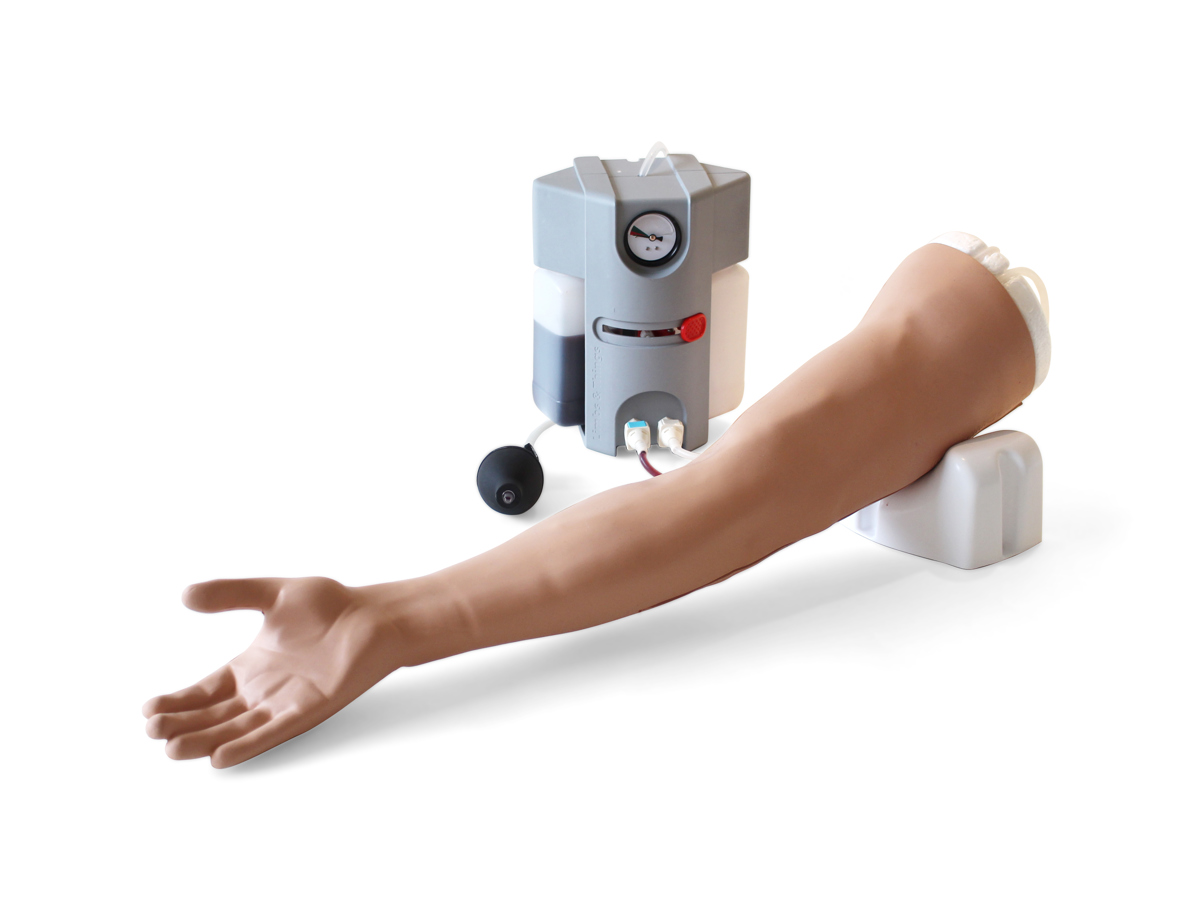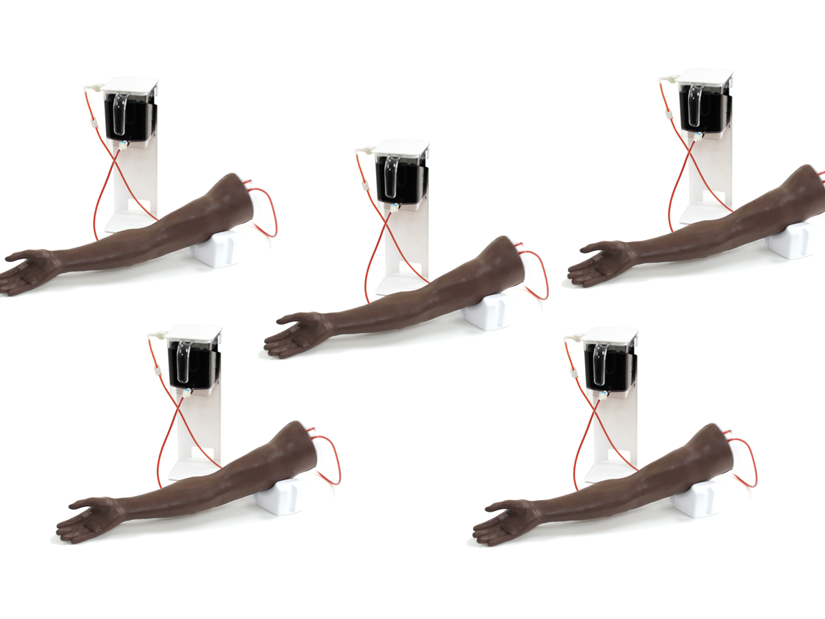 Designed for easy setup, the Venipuncture Arm features a patented locking system that allows quick skin removal for fast replacement of modular veins.