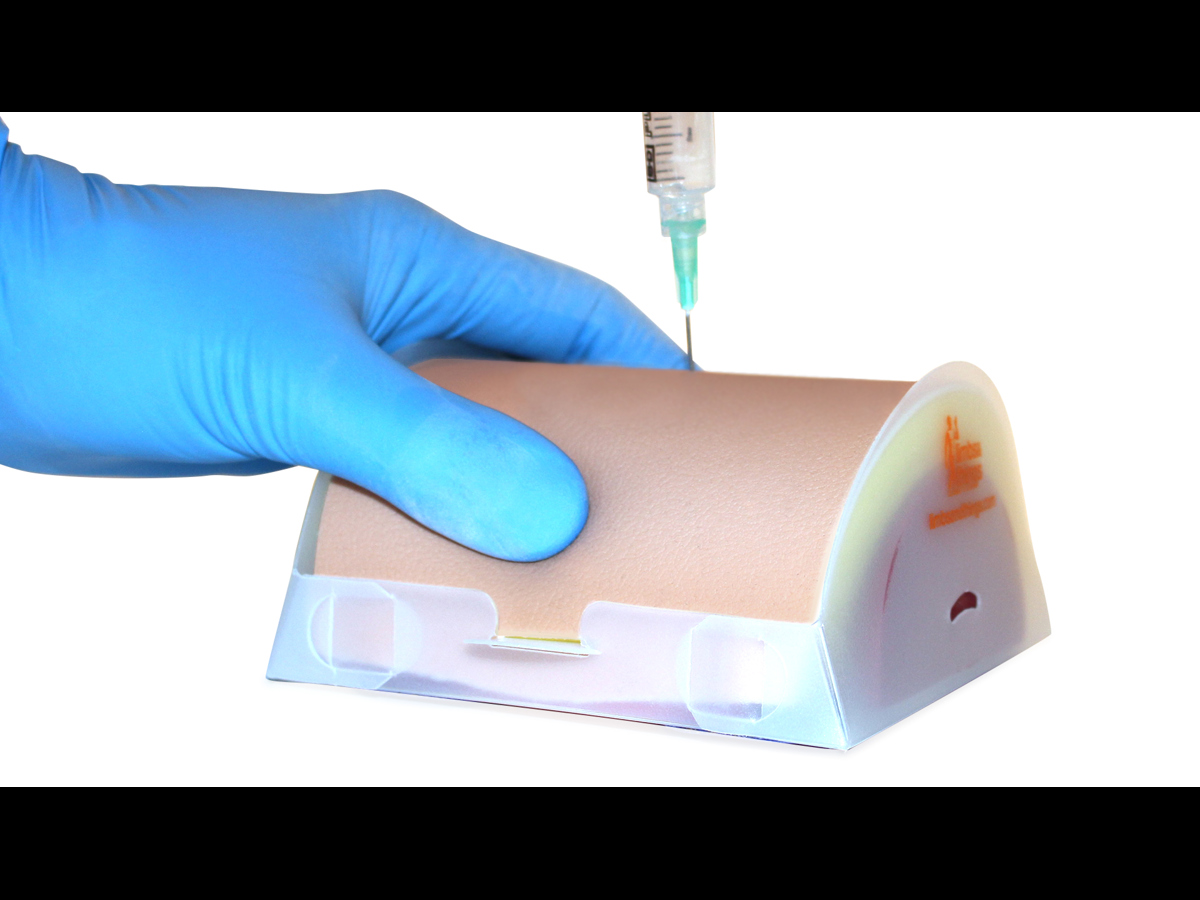 The trainer features realistic and easily identifiable tissue layers that represent the epidermis, dermis, adipose, and muscle. The receptive anatomical layers make this an ideal tool for teaching correct needle positioning to beginners and more clinically experienced individuals.