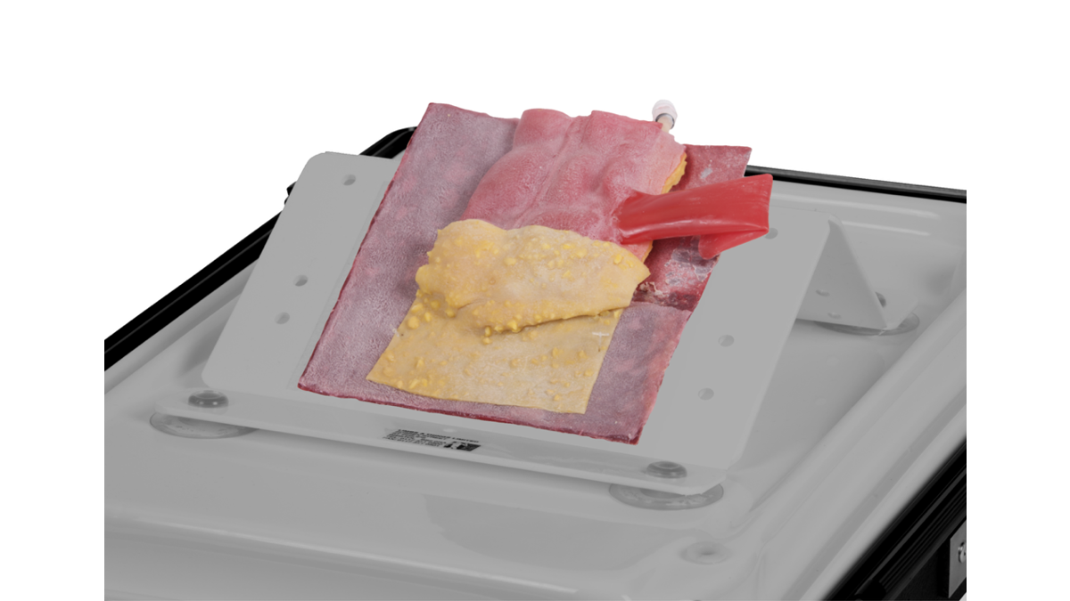 Vermiform Appendix pads are supplied individually. Easily attach the model to a retaining jig, or other laparoscopic equipment, to practice removal of the appendix and closure of a peptic ulcer using peritoneum and mesentry.
