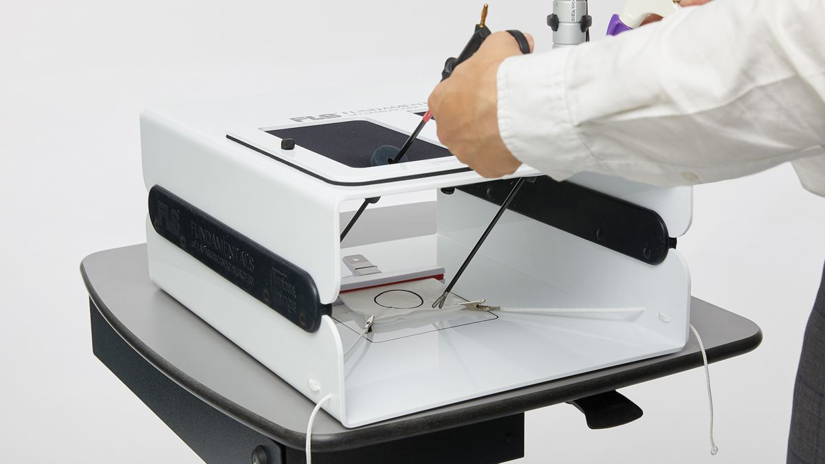 GMC General Surgery Curriculum (p.87): To understand the principles of laparoscopic surgery including technical aspects and common complications; Technology of video imaging, cameras. Laparoscopic instruments, clips, staplers and port types Diagnostic laparoscopy; Laparoscopic suturing and knotting; Control of laparoscopic bleeding