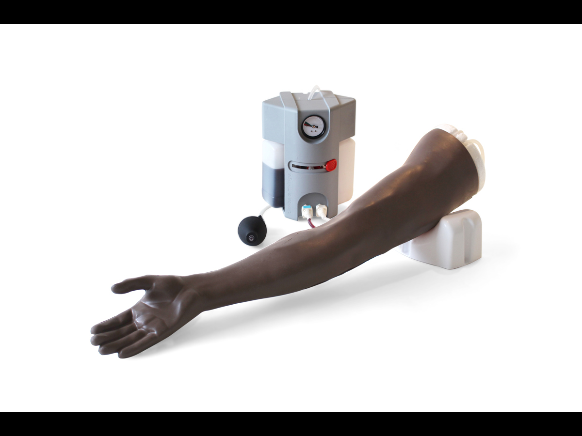 Each venipuncture arm is delivered with veins and arm skin fitted. Simply prime with diluted concentrate blood and the venipuncture trainer is ready to use in minutes.