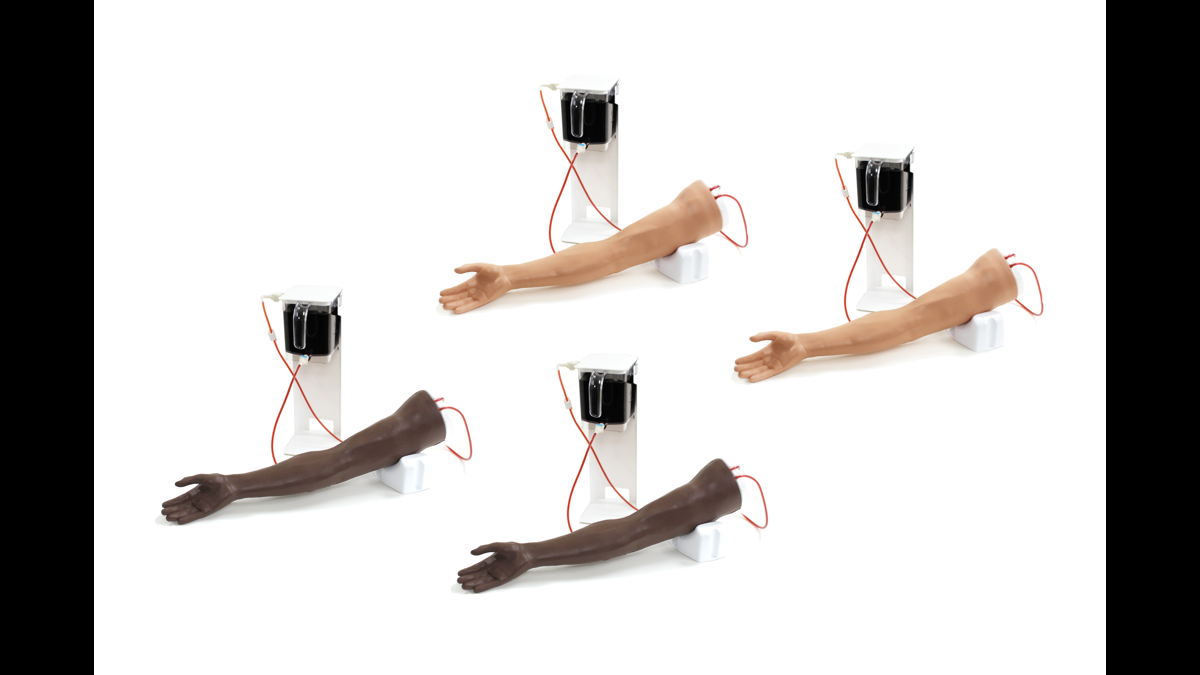 The NEW Standard Venipuncture Value Pack includes 4 Standard Venipuncture Arm Trainers, 4 extra ACF Vein Modules and 4 extra Venipuncture Arm Skins. This cost-effective set includes two Standard light arms, and two Standard dark arms.