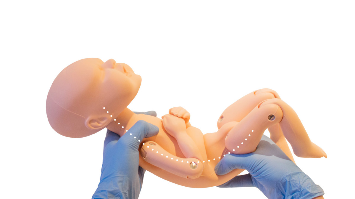 The PROMPT Flex Standard Baby represents a full-term infant, which works with the PROMPT Flex Range to simulate a variety of birthing scenarios. Its key anatomical landmarks and features allow for focused learning when managing the delivery of the baby.