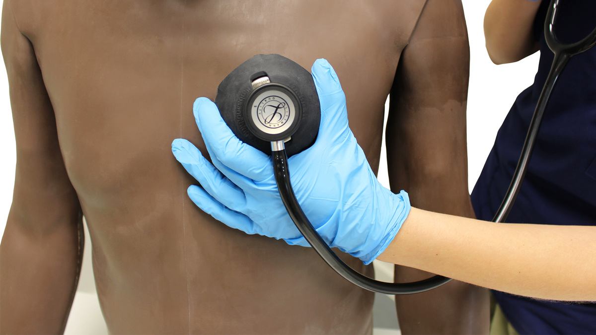 Designed with realism in mind, the Cardiovascular and Respiratory Exam Trainer includes a “LimbPAD”. Fit the device to any of the commonly used stethoscopes and simply use the stethoscope as normal.