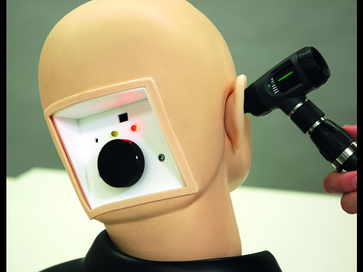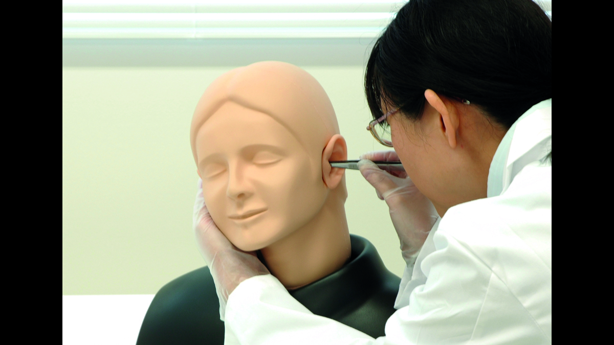 Kyoto Kagaku’s Ear Examination Simulator II is a life size model of an adult head and shoulders. The ear anatomy includes the external acoustic meatus and tympanic membrane for training in examinations with an otoscope and foreign body removal.