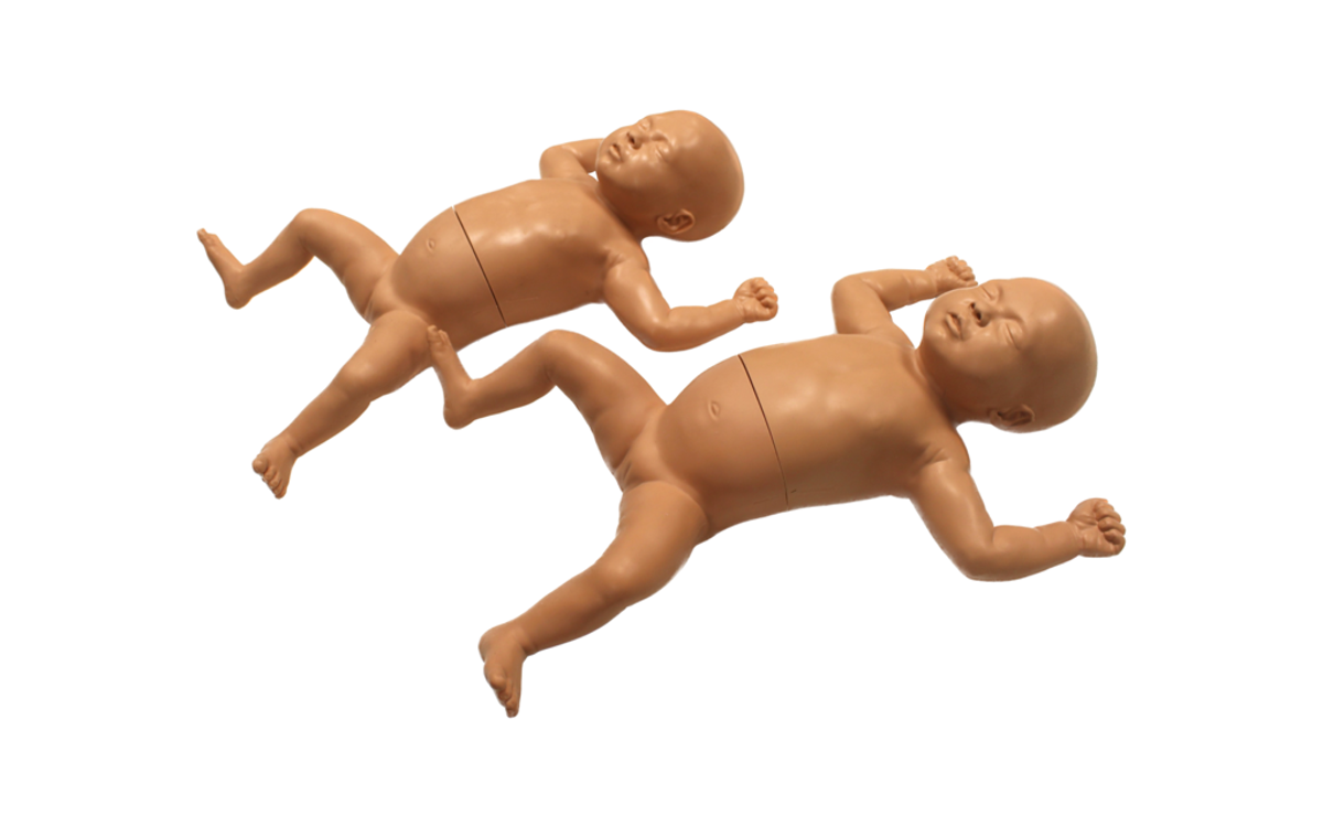 This pediatric trainer comes complete with equipment to run training for infant examinations. Included are items of clothing for accurate patient handling, and a controller that can adjust the baby's vital signs.