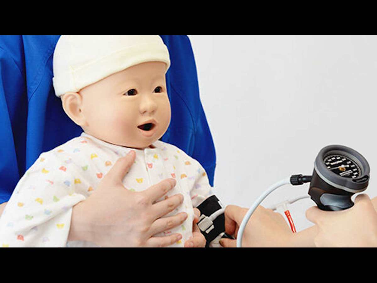 Kyoto Kagaku's new Pediatric Examination Simulator is designed to represent a 1 year old child, and allows for training in vital sign measurements and physical examinations.