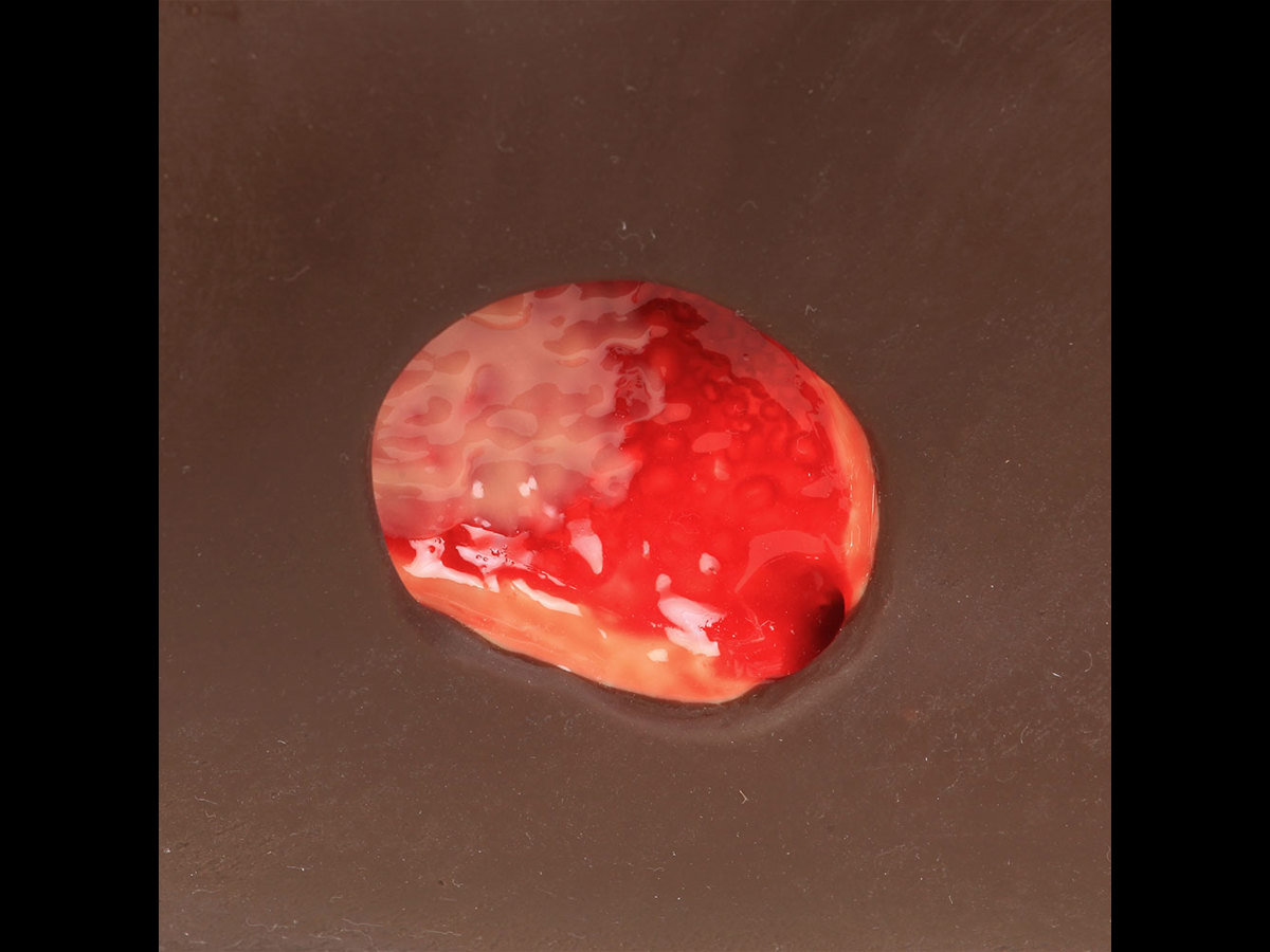 - Stage 3 pressure ulcer with undermining, tunnelling, subcutaneous fat and slough.
