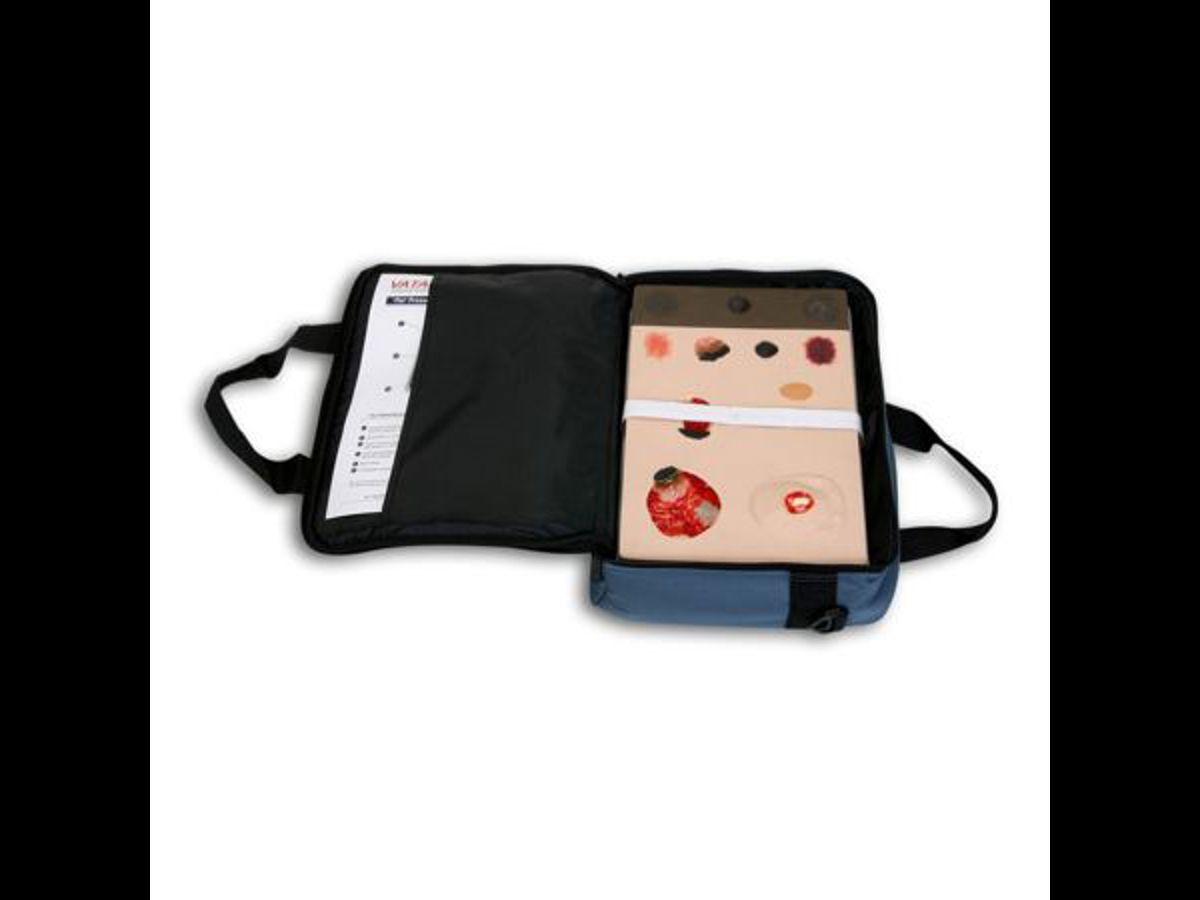 A durable, zippered, padded fabric case with carrying handles and pockets for supplies. For use with Pat Pressure Ulcer Staging Model.