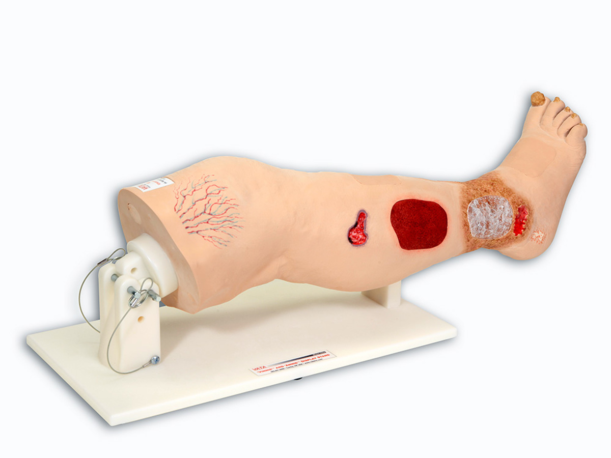 Leg models for arterial/venous insufficiencies, pressure injuries, and wound care.