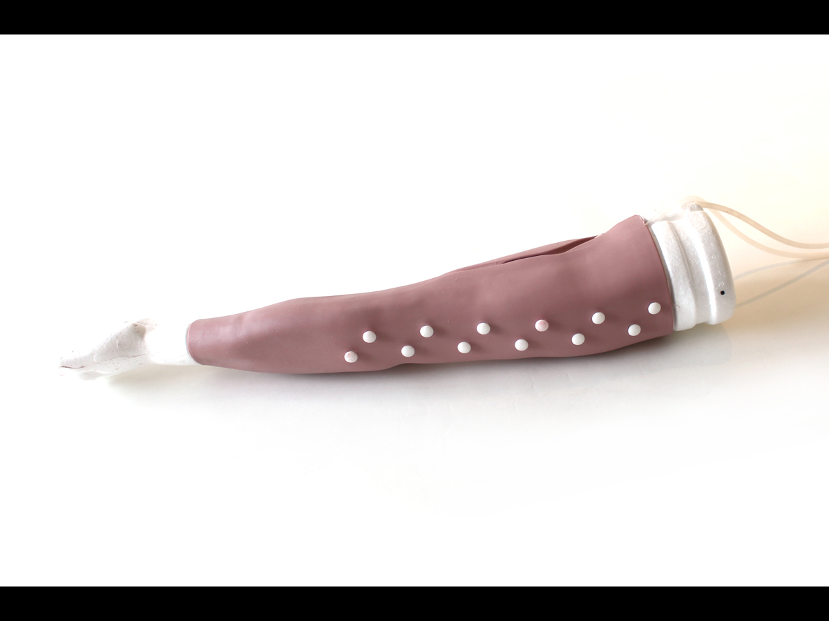 - Use water-based lubricant to fit arm skin over the venipuncture arm base