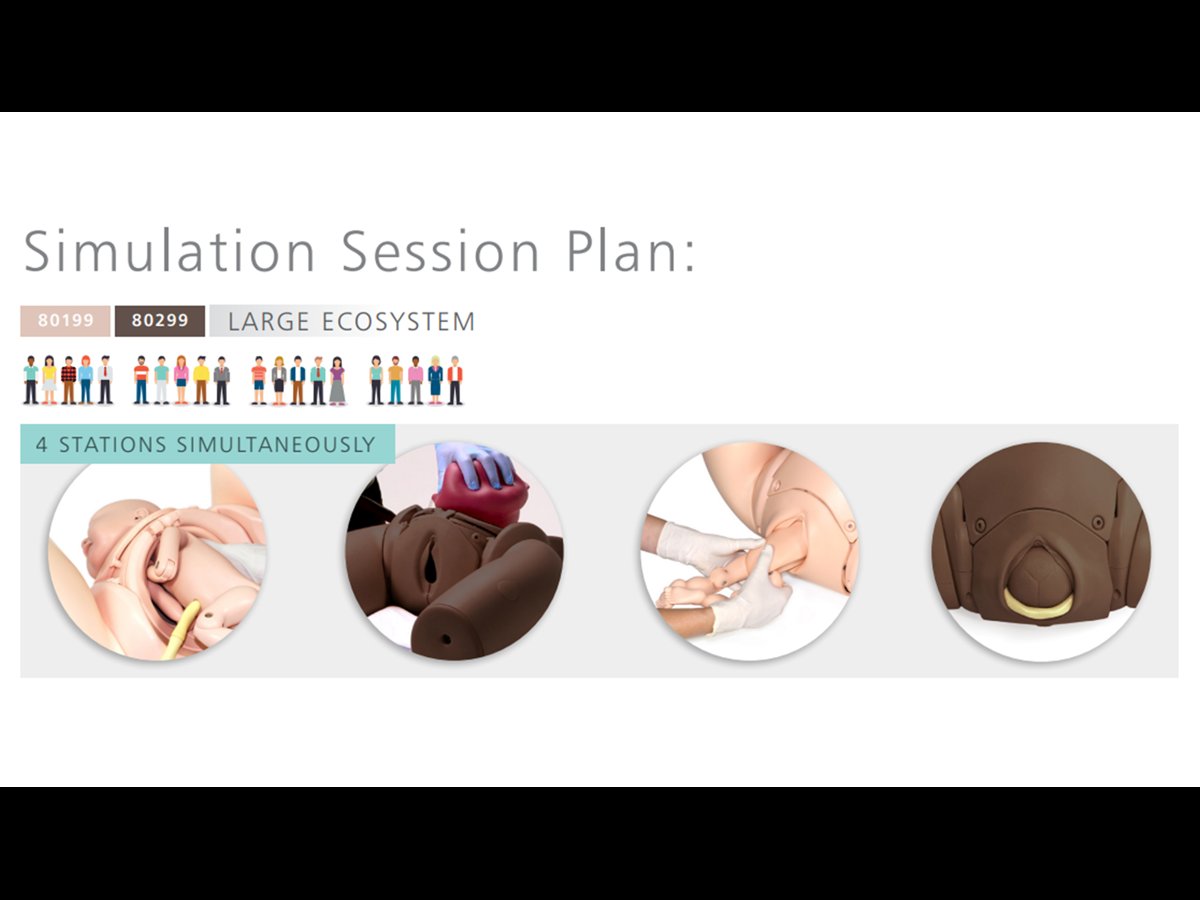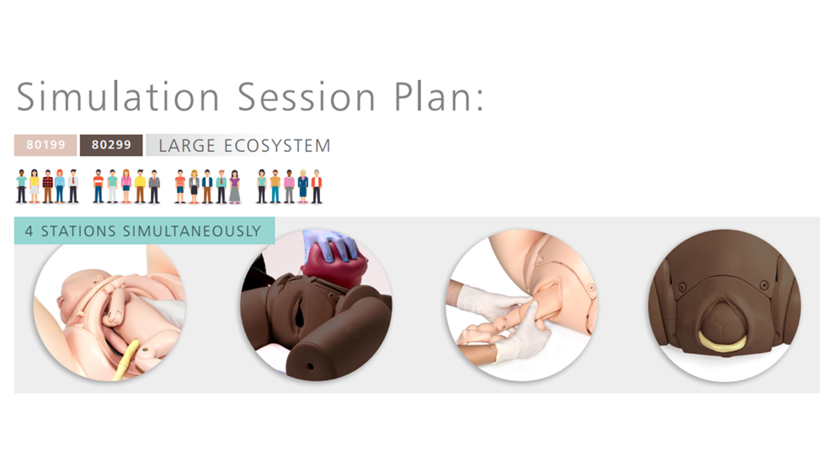 The Limbs & Things ECOSystem Large has been designed for classes of 10 or more learners, running four ECO obstetrical emergency stations simultaneously. The ECOSystem package includes: