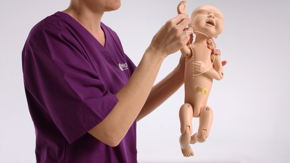 - Baby model represents a full term infant in weight and size, allowing for realistic handling