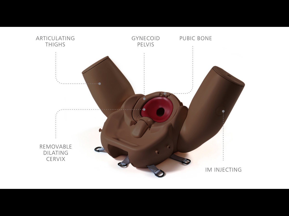 - Gynaecoid shape pelvis with soft, flexible birth canal, dilatable cervix and pelvic floor musculature provides realism in normal and complicated births