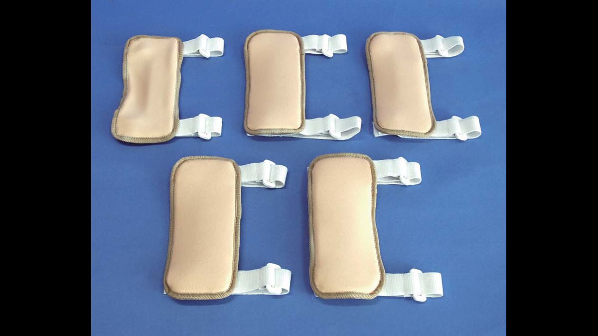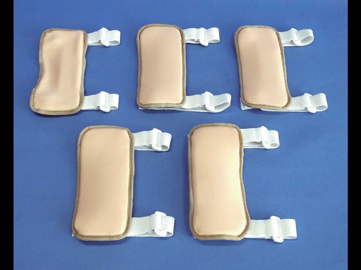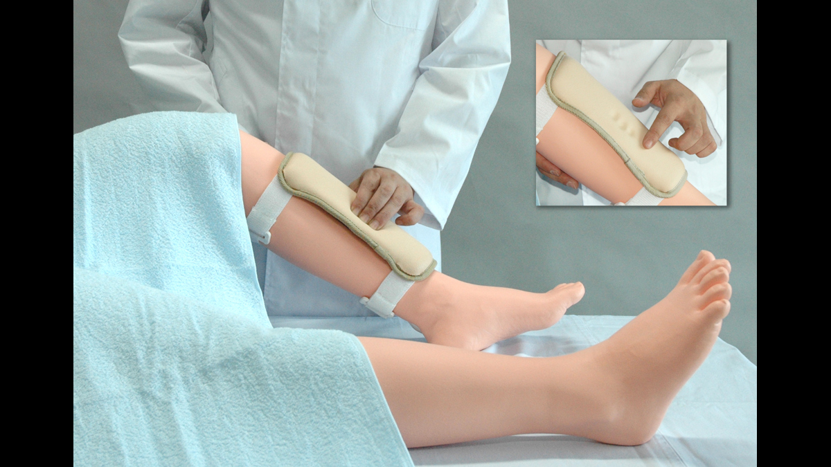 Trainers can be applied to the lower leg of a simulated patient or manikin for a true to life training experience. The pad grading is based on “Mosby’s Guide to Physical Examination, 7th Edition”.