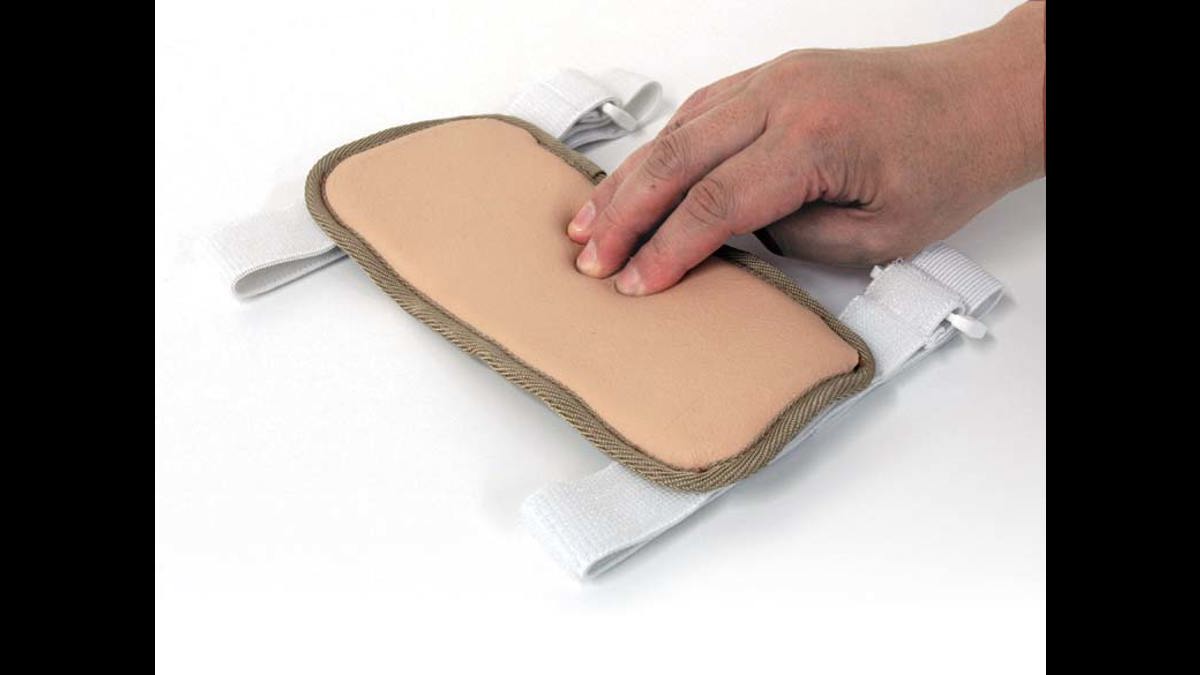 Kyoto Kagaku’s Pitting Edema Strap On Simulator is comprised of five variations of pitting edema pads. Graded from Normal to +4, it offers different resistances, depths of indentations, and length of time to rebound.