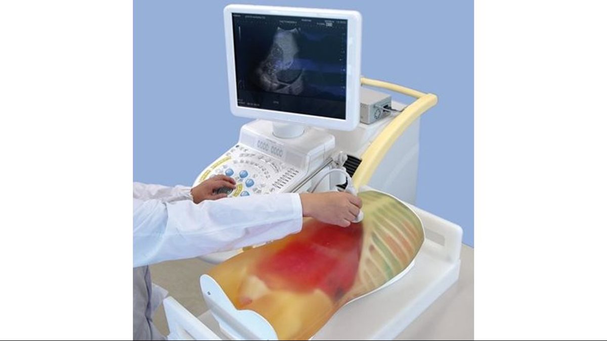 This high-fidelity phantom is for training in FAST (Focused Assessment with Sonography for Trauma) ultrasound and identifying the presence of free intraperitoneal or pericardial fluid in trauma patients.