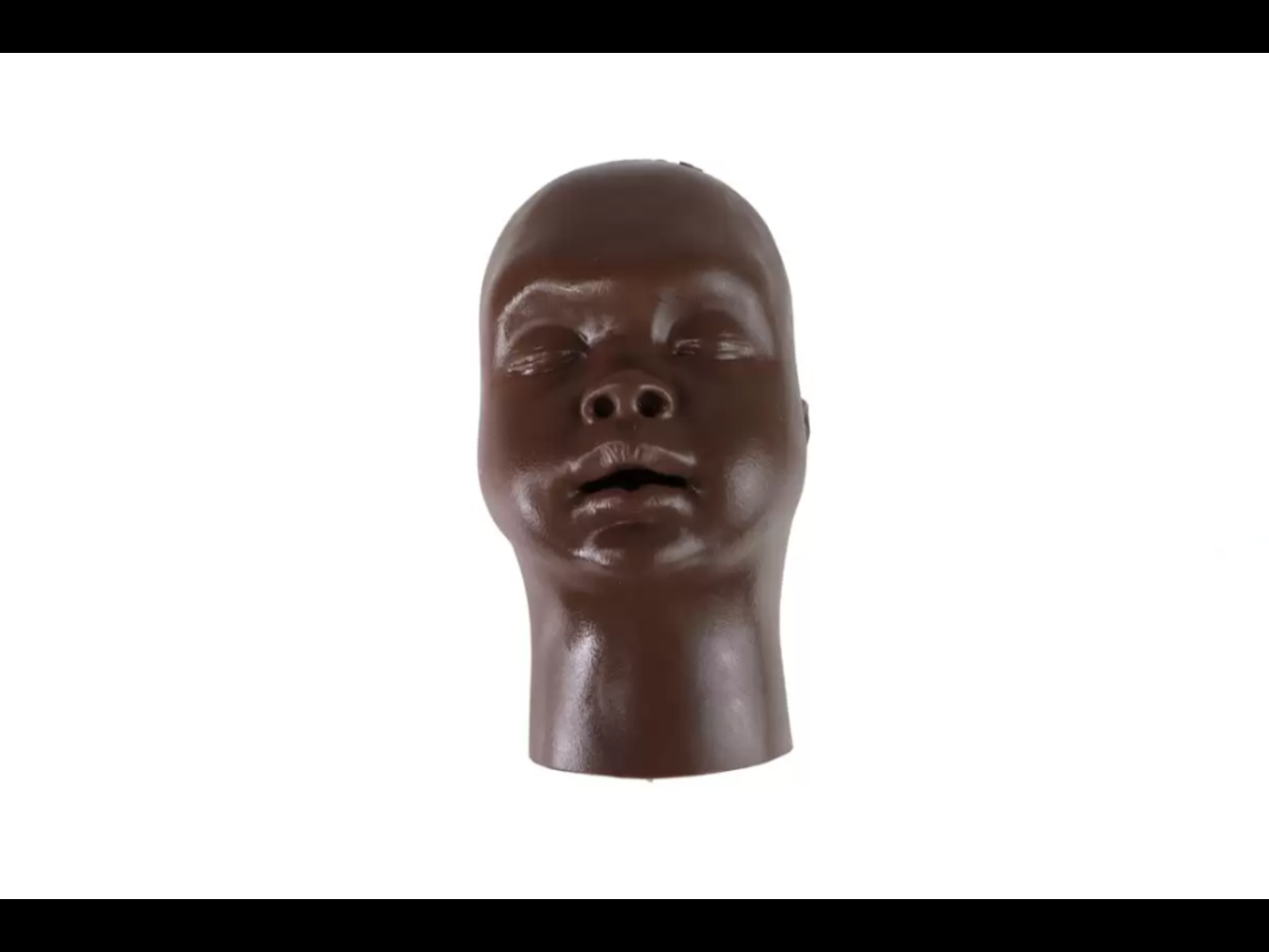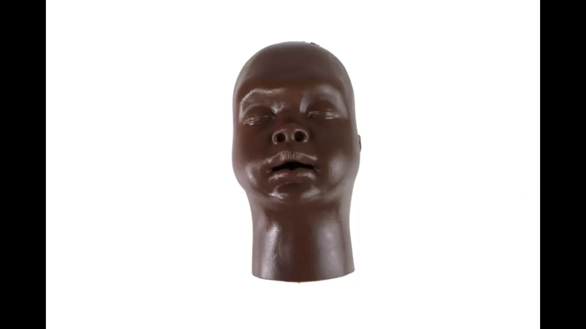 Replacement dark skin tone head skin and nasal connector for the Baby X AirSim intubation manikin.