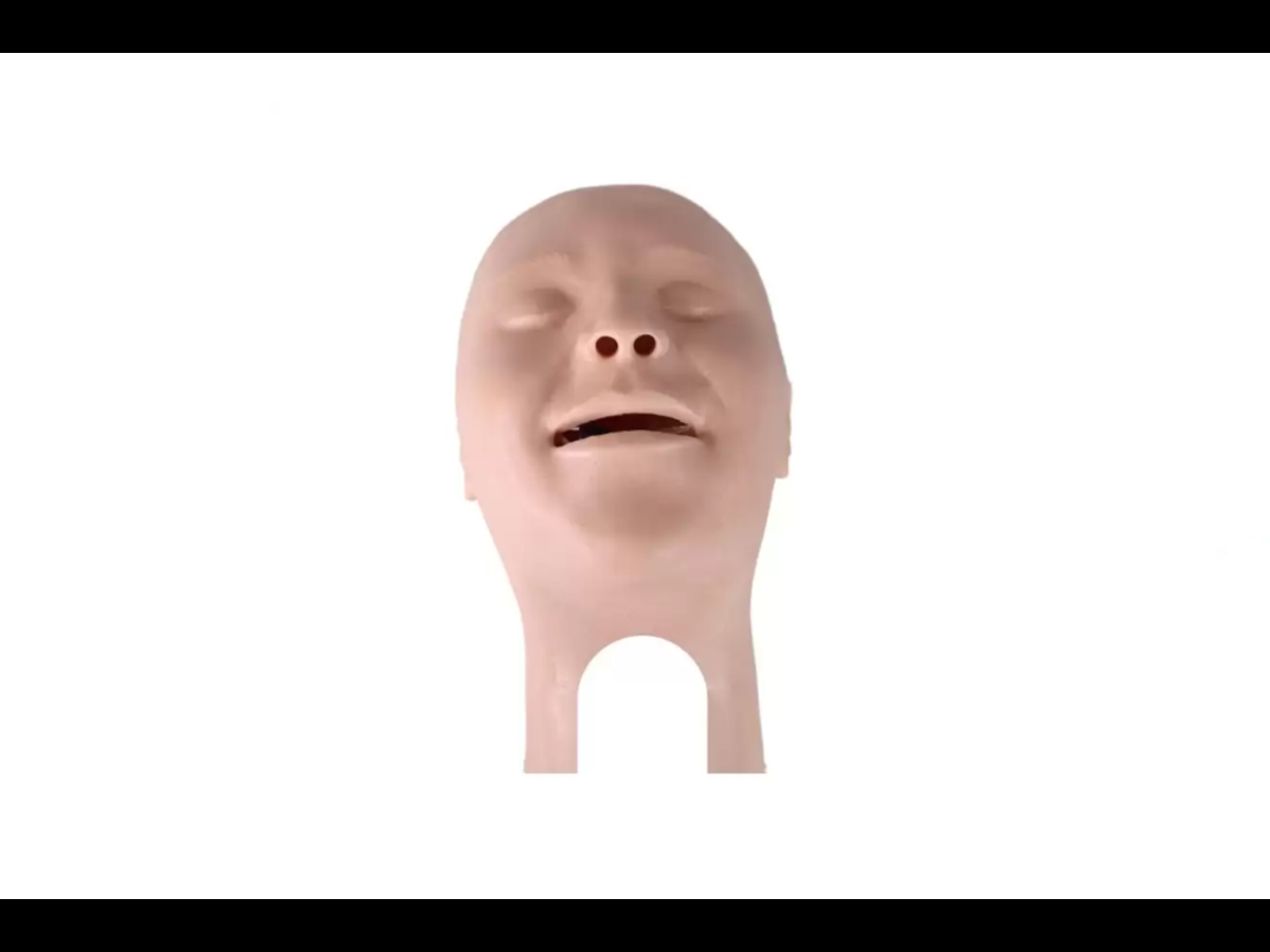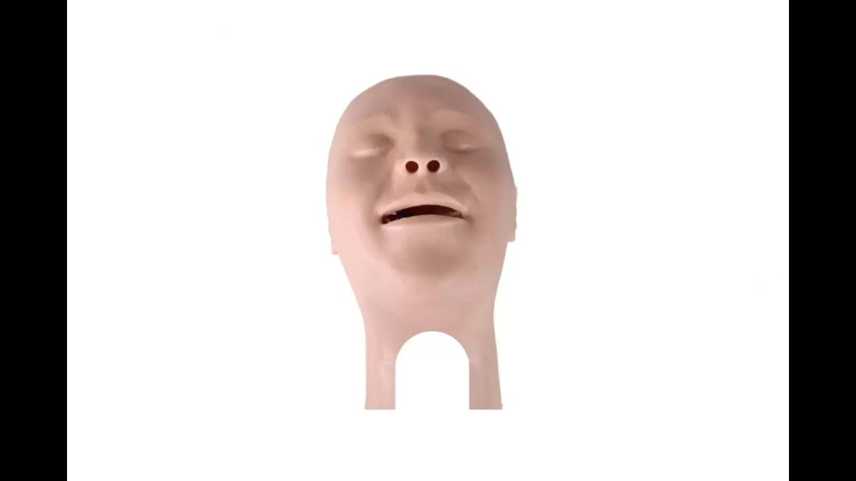 Replacement light skin tone head skin and nasal connector for the Child Combo X AirSim intubation manikin.
