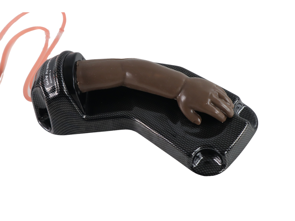 This IV arm trainer can be fully sanitised by wiping the silicone skin with a 75%+ alcohol spray