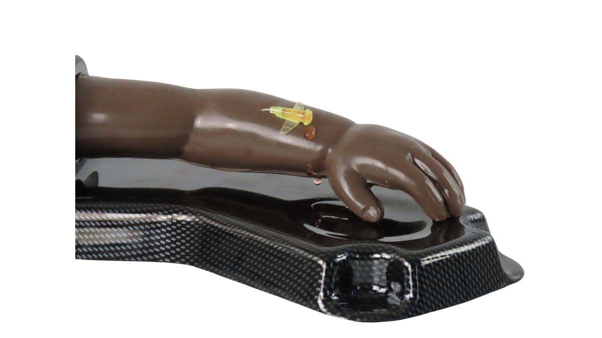 Its soft and durable skin gives realistic resistance against needle insertion, and each cannulation site allows for positive feedback upon successful technique.