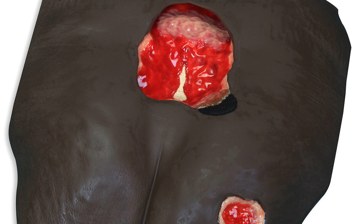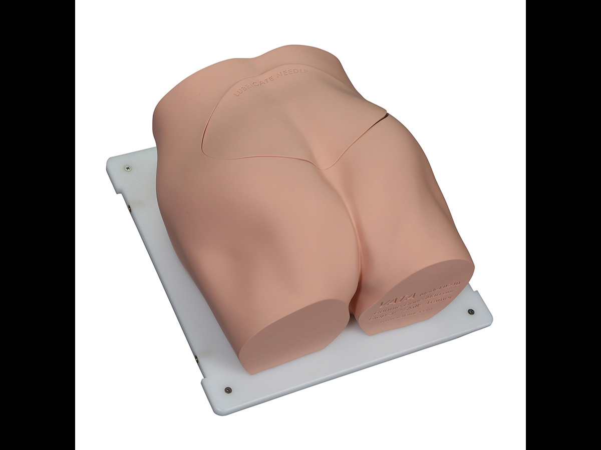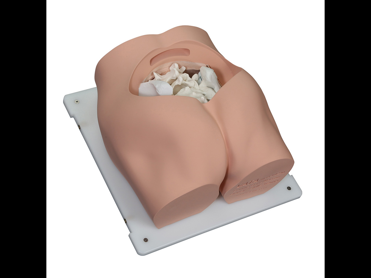 A realistic skills trainer, designed with clinician input to replicate, teach and reinforce the skills needed to perform a posterior iliac crest bone marrow biopsy procedure.