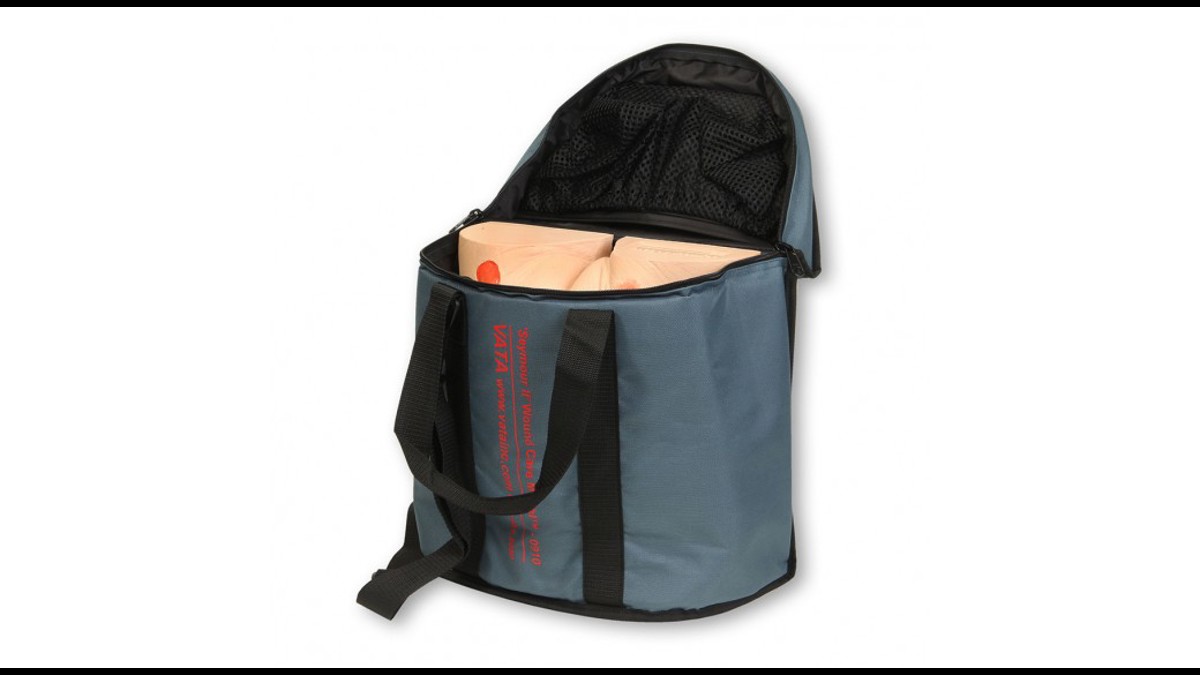 Custom durable, zippered, padded case with carrying handles, shoulder strap and pockets in the top lid to store supplies.